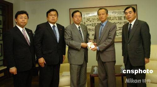 5月13日下午,日本執(zhí)政黨之一的公明黨黨首太田昭宏來到中國(guó)駐日使館向四川地震災(zāi)區(qū)捐贈(zèng)五十萬日元善款。中國(guó)駐日大使崔天凱、公使孔鉉佑代表中國(guó)政府接受了公明黨的捐贈(zèng)。中新社發(fā) 朱沿華 攝