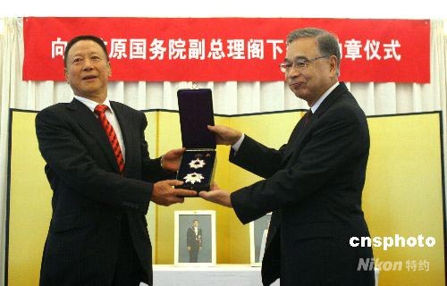 中國前副總理谷牧獲授日本旭日大勛章