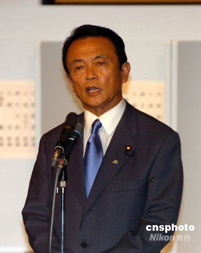 9月22日下午,日本自民黨總裁選舉中,第4次參選的麻生太郎以351票的高票當選該黨第23任總裁。中新社發(fā) 朱沿華 攝
