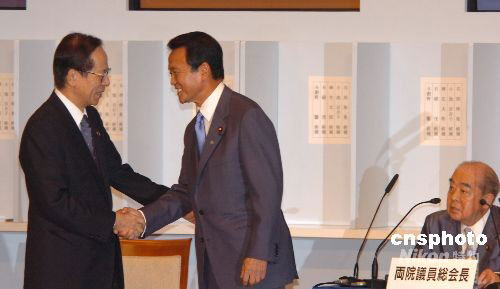 9月22日下午,日本自民黨總裁選舉中,第4次參選的麻生太郎以351票的高票當選該黨第23任總裁。中新社發(fā) 朱沿華 攝