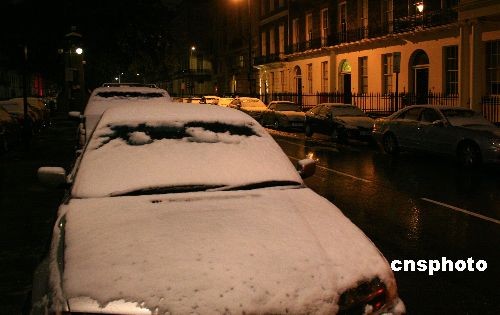 當(dāng)?shù)貢r(shí)間10月28日晚,英國(guó)包括首都倫敦在內(nèi)的英格蘭中部極不尋常地早早下起今冬的第一場(chǎng)雪,英國(guó)大部分地區(qū)氣溫也隨之驟降。圖為28日深夜在倫敦市區(qū),中國(guó)駐英使館附近街區(qū)的汽車被大雪覆蓋。中新社發(fā) 李鵬 攝