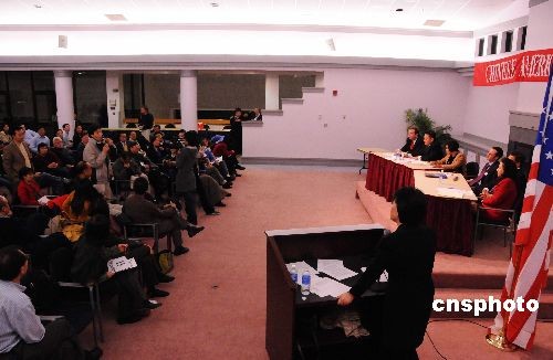當(dāng)?shù)貢r(shí)間十月二十八日晚,兩黨競(jìng)選陣營(yíng)代表在此間和美籍華人社區(qū)領(lǐng)袖舉行特別會(huì)議,就兩黨的競(jìng)選政策回答了華裔選民關(guān)注的問題。圖為民主共和兩黨競(jìng)選陣營(yíng)代表和華裔選民交流。中新社發(fā) 邱江波 攝
