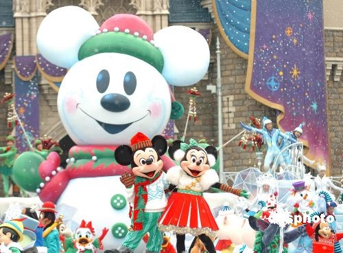 11月7日,東京迪斯尼為迎接2008年圣誕推出了新的卡通形象“雪米奇”。數(shù)萬游客從四面八方趕至爭相一睹這個漂亮善良的新朋友。圖為在歌舞表演中的米奇、米妮與雪米奇。中新社發(fā) 朱沿華 攝