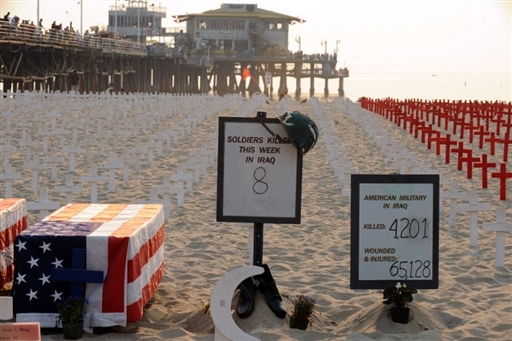 11月16日,美國加州,人們?yōu)橐翍?zhàn)中死難的美國士兵豎起的十字架。自2004年起的每個(gè)周日,幾乎都有新的十字架被豎起。