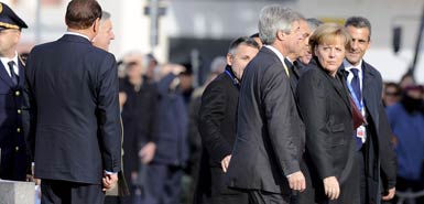 貝盧斯科尼撇開歡迎委員會的工作人員,藏在一個街燈柱后面。當(dāng)?shù)聡偫砟藸栕呦聦\,要進入他們會面的地區(qū)委員會總部時,他突然從街燈柱后面跳出來,嘴里還喊著“咕咕”。據(jù)說默克爾看起來很開心,與貝盧斯科尼擁抱,并且親切地稱其“西爾維奧” 。