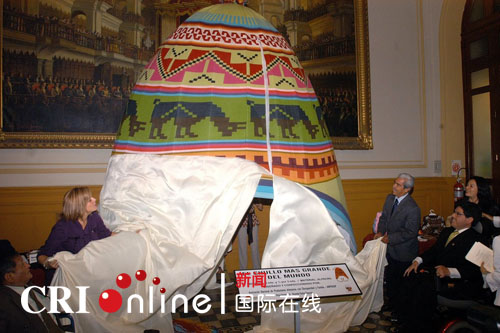 為慶祝即將召開的亞太經(jīng)合組織第16次領(lǐng)導(dǎo)人非正式會議,秘魯人特意制作了一頂世界上最大的印第安絨帽,并于19日在秘魯國家博物館展出。