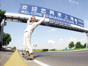 在來到瑞士之后,托馬遜感覺到騎車太乏味,于是靈光乍現(xiàn),決定用一塊4輪滑板代步。按照托馬遜的原計(jì)劃,他打算從英國直飛新西蘭回國。可是到達(dá)英國后,他卻深深地迷戀上了滑板運(yùn)動,決定“一滑到底”。據(jù)了解,托馬遜每天背著15公斤重的背包,平均每天滑行5到7小時,由于風(fēng)向和路況不同,每天行程60到120公里不等。結(jié)束了長達(dá)7000公里的歐美之行后,他開始朝著旅途的最后一站——中國進(jìn)發(fā)。他從哈薩克斯坦邊境滑進(jìn)中國境內(nèi)的新疆西北部,然后又經(jīng)過青藏高原,最后來到繁華的大上海。