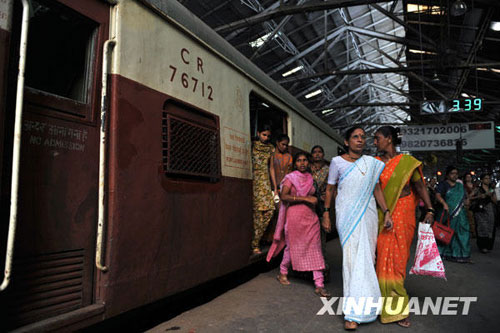 12月1日,乘客抵達(dá)印度孟買賈特拉帕蒂·希瓦吉火車站(CST火車站)。新華社記者 呂小煒攝
