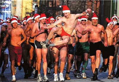 7日,一群穿泳裝戴圣誕帽的“圣誕老人”頂著寒風(fēng)在匈牙利首都布達(dá)佩斯參加跑步活動(dòng)。當(dāng)日,一些身著泳裝的“圣誕老人”在布達(dá)佩斯舉行慈善跑步活動(dòng),為當(dāng)?shù)匾患覂和t(yī)院捐款。