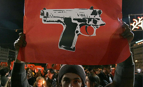 12月9日,在希臘雅典,民眾舉行和平集會(huì),抗議警察打死15歲的少年格里戈羅普洛斯。格里戈羅普洛斯的葬禮當(dāng)天在雅典郊外舉行。12月6日晚,這名少年在沖突中被警察開槍打死,由此引發(fā)希臘全國(guó)主要城市多日騷亂。