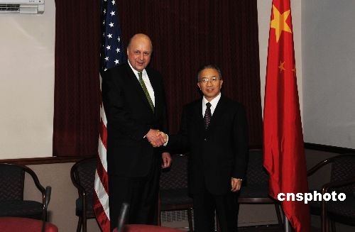 第六次中美戰(zhàn)略對話當(dāng)?shù)貢r間12月15日在華盛頓舉行,中國國務(wù)委員戴秉國與美國常務(wù)副國務(wù)卿內(nèi)格羅蓬特共同主持會談。圖為戰(zhàn)略對話開始前,戴秉國與內(nèi)格羅蓬特面對媒體握手。中新社發(fā) 邱江波 攝