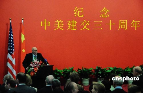當(dāng)?shù)貢r(shí)間12月16日晚,中國(guó)駐美使館舉行活動(dòng)紀(jì)念中美建交30周年,活動(dòng)由駐美大使館公使謝鋒主持。中國(guó)全國(guó)政協(xié)副主席董建華、美國(guó)財(cái)政部長(zhǎng)保爾森、勞工部長(zhǎng)趙小蘭、美國(guó)貿(mào)易代表施瓦布、常務(wù)副國(guó)務(wù)卿內(nèi)格羅蓬特等中外名流近千人出席。中新社發(fā) 邱江波 攝