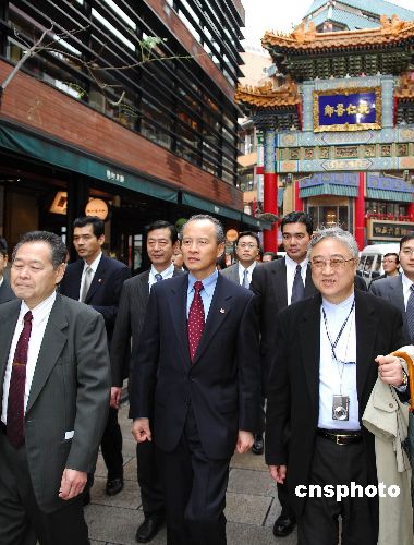 2009年1月23日上午,中國駐日本國特命全權大使崔天凱冒雨前往橫濱中華街,向當?shù)厝A人華僑拜年。崔天凱與橫濱華僑總會會長任政光親切會談,慰問熱心資助教育的愛國華僑吳桂顯先生的遺孀,在臺灣同胞茶店品茶論道等,親身體驗當?shù)厝A人生活。崔天凱還視察了橫濱中華街關帝廟、媽祖廟等建筑,并出席華僑主辦的歡迎午宴。中新社發(fā) 侯宇 攝