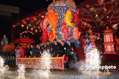 長(zhǎng)崎市中心1月26日在主要街道掛起了15000盞中國(guó)傳統(tǒng)的提燈和各式彩燈。數(shù)以萬(wàn)計(jì)的長(zhǎng)崎市民和在長(zhǎng)崎華僑華人一起走上街頭、徜徉燈海,同慶中國(guó)春節(jié)。圖為此次燈會(huì)的主會(huì)場(chǎng)長(zhǎng)崎市湊公園于當(dāng)晚6時(shí)舉辦了盛大的點(diǎn)燈儀式。中國(guó)駐長(zhǎng)崎總領(lǐng)館總領(lǐng)事滕安軍、當(dāng)?shù)厝A僑華人代表劉濟(jì)昌與長(zhǎng)崎縣副知事立石曉、長(zhǎng)崎市市長(zhǎng)田上富久等人一起啟動(dòng)點(diǎn)燈按鈕。 中新社發(fā) 關(guān)妍 攝