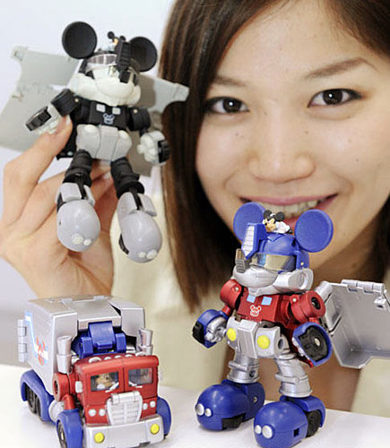 2月2日,在日本首都東京,Tomy玩具公司的一名員工展示“變形金剛”版的經(jīng)典動(dòng)畫角色米奇。這種“變形金剛”版米奇可以從一輛卡車變成米奇的樣子,有黑白和彩色兩款,將于2月26日上市。