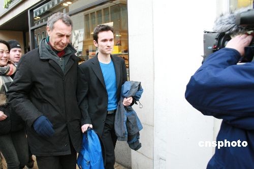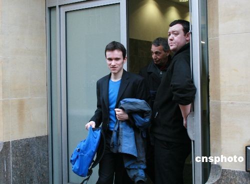 當(dāng)?shù)貢r(shí)間2月10日上午10時(shí),干擾溫家寶總理劍橋演講的德國(guó)籍學(xué)生馬丁·楊克,在劍橋地方法院出庭受審。馬丁為自己做無(wú)罪辯護(hù),法庭將于3月10日10時(shí)重新開庭審理。圖為馬丁·楊克在初審后離開法院。中新社發(fā) 李鵬 攝