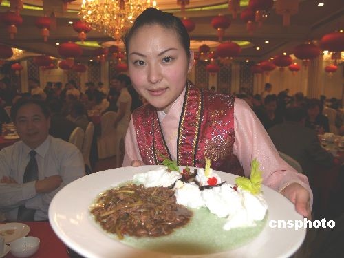 2月19日,“揚(yáng)州紅樓飲食文化節(jié)”在美國(guó)洛杉磯金都凱旋皇宮大酒店開(kāi)幕,這是有華夏首席佳肴美譽(yù)的“紅樓宴”首次登陸北美。 中新社發(fā) 盧威 攝