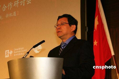 當(dāng)?shù)貢r(shí)間2月27日下午,中國(guó)機(jī)電進(jìn)出口商會(huì)和英中貿(mào)易協(xié)會(huì)在倫敦共同舉辦中英經(jīng)貿(mào)合作研討會(huì),中英兩國(guó)企業(yè)界人士600多人與會(huì)。圖為中國(guó)商務(wù)部長(zhǎng)陳德銘在研討會(huì)上致辭。中新社發(fā) 李鵬 攝