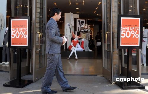 周日原本是商場人氣最旺的時候,洛杉磯市區(qū)的一家中高檔服裝店打出“最高打五折”的告示,店員在門口發(fā)放優(yōu)惠券,但店內(nèi)顧客依舊寥寥。受金融危機影響,全美失業(yè)率突破百分之八,消費者信心大受打擊,中高檔商品經(jīng)營者首當其沖。中新社發(fā) 張煒 攝