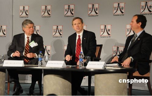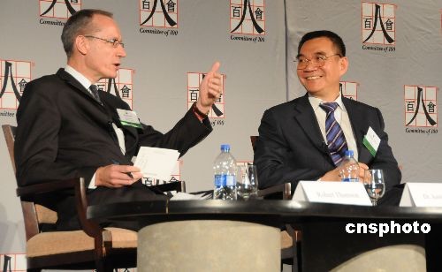 四月三十日,著名的美國(guó)華裔組織百人會(huì)第十八屆年會(huì)在華盛頓召開(kāi),為期三天的會(huì)議云集了中美兩國(guó)重量級(jí)人物,包括白宮內(nèi)閣秘書(shū)長(zhǎng)盧沛寧,美國(guó)總統(tǒng)奧巴馬特別顧問(wèn)、國(guó)家安全委員會(huì)首席中國(guó)問(wèn)題顧問(wèn)杰弗里·貝德,美國(guó)貿(mào)易代表柯克,世界銀行副行長(zhǎng)、首席經(jīng)濟(jì)學(xué)家林毅夫等,他們將就有關(guān)中美關(guān)系、金融危機(jī)等眾多熱點(diǎn)問(wèn)題進(jìn)行深入分析和廣泛研討。中新社發(fā) 吳慶才 攝