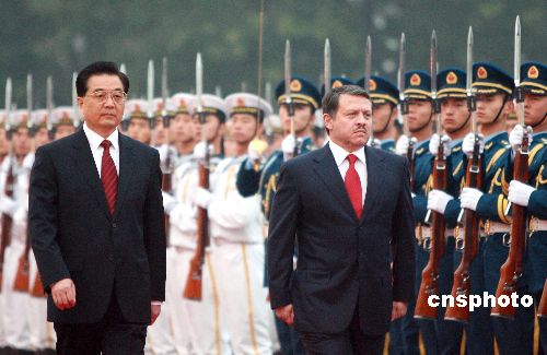 十月三十日,中國國家主席胡錦濤在北京人民大會(huì)堂東門外廣場舉行儀式歡迎約旦國王阿卜杜拉二世·本·侯賽因。中新社發(fā) 廖文靜 攝
