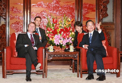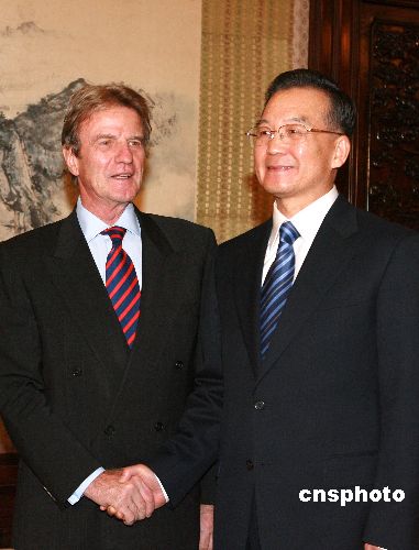十月三十一日,中國(guó)國(guó)務(wù)院總理溫家寶在北京會(huì)見法國(guó)外交部部長(zhǎng)貝爾納·庫(kù)什內(nèi)。中新社發(fā) 廖文靜 攝