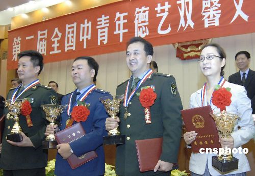 11月5日,中央宣傳部、人事部、中國文聯(lián)聯(lián)合在北京人民大會堂隆重舉行第二屆全國中青年德藝雙馨文藝工作者表彰大會,56位藝術(shù)家榮獲“全國中青年德藝雙馨文藝工作者”榮譽(yù)稱號。中新社發(fā) 徐曦弋 攝