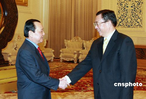 十一月二十日,中共中央政治局常委、中央紀(jì)委書記賀國強在北京人民大會堂會見越共中央政治局委員黎清海。中新社發(fā) 廖文靜 攝