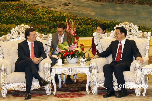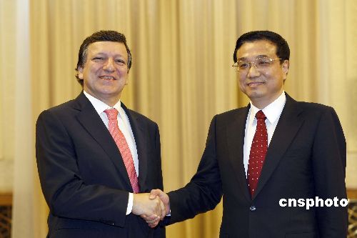 十一月二十八日,中共中央政治局常委李克強(qiáng)在北京人民大會(huì)堂會(huì)見(jiàn)歐盟委員會(huì)主席巴羅佐。中新社發(fā) 盛佳鵬 攝