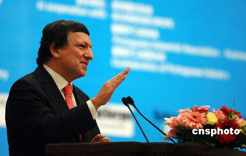 十一月二十八日,第四屆中歐工商峰會(huì)在北京人民大會(huì)堂閉幕。歐盟委員會(huì)主席巴羅佐在閉幕式上作主旨講話。中新社發(fā) 廖文靜 攝