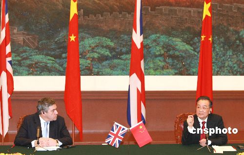 圖:溫家寶與英國(guó)首相布朗共同會(huì)見(jiàn)記者