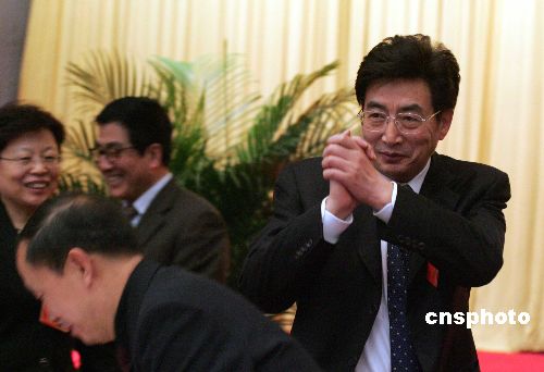 圖:北京市代市長郭金龍“作揖”感謝人大代表