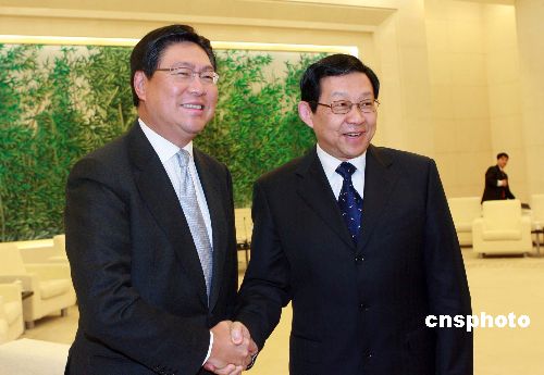 一月二十五日,中國商務部部長陳德銘在北京會見香港商務及經(jīng)濟發(fā)展局長馬時亨一行。中新社發(fā) 廖文靜 攝