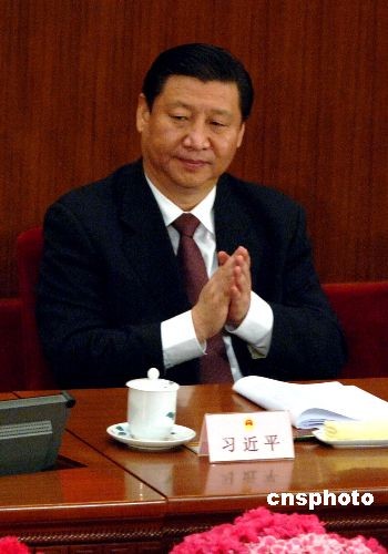 3月5日,十一屆全國(guó)人大一次會(huì)議在北京人民大會(huì)堂開(kāi)幕,會(huì)議聽(tīng)取溫家寶作政府工作報(bào)告。大會(huì)主席團(tuán)常務(wù)主席、執(zhí)行主席習(xí)近平在會(huì)上。中新社發(fā) 王東明 攝