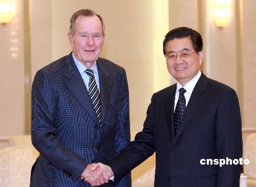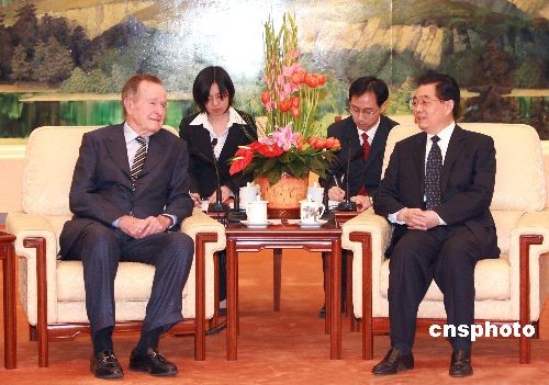 圖:胡錦濤會見美國前總統(tǒng)喬治·布什
