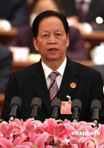 圖:肖揚在全國人大第三次全體會作高法工作報告