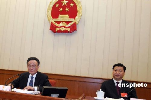 圖:吳邦國、習(xí)近平出席人大主席團(tuán)會議