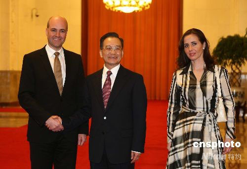 溫家寶歡迎瑞典首相賴因費(fèi)爾特訪華
