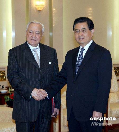 胡錦濤會(huì)見法國(guó)參議院議長(zhǎng)蓬斯萊一行