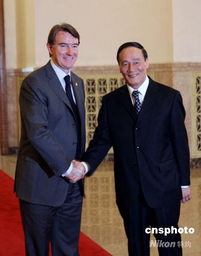 四月二十五日,首次中歐經(jīng)貿(mào)高層對(duì)話在北京人民大會(huì)堂舉行。中國(guó)國(guó)務(wù)院副總理王岐山和歐盟貿(mào)易委員曼德爾森共同主持對(duì)話。這將成為中歐間最高級(jí)別的對(duì)話平臺(tái)。 中新社發(fā) 任海霞 攝