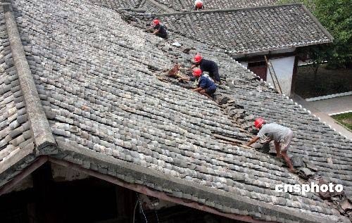 圖為施工隊(duì)伍正抓緊修復(fù)明月小學(xué)的部分教室。2008年5年12日四川汶川大地震波及華鎣市,震感強(qiáng)烈,致使該市學(xué)校大面積不同程度受災(zāi),據(jù)統(tǒng)計(jì),有11所學(xué)校受災(zāi),受損面積8200平方米,損失680萬(wàn)余元,致使近1500名學(xué)生不能正常行課。災(zāi)情發(fā)生后,四川華鎣市委市政府立即組織市教育局和各學(xué)校迅速行動(dòng),啟動(dòng)了應(yīng)急預(yù)案,各級(jí)領(lǐng)導(dǎo)在第一時(shí)間分赴受災(zāi)學(xué)校指揮指導(dǎo)抗災(zāi)救災(zāi)工作,確保了師生生命財(cái)產(chǎn)安全,無(wú)一例地震傷亡事故發(fā)生;同時(shí),他們?cè)诮M織專家鑒定后,立即籌集資金,組織施工隊(duì)伍修復(fù)損壞不大的教室,使學(xué)生盡快復(fù)課。