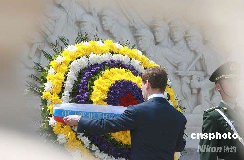 俄羅斯總統(tǒng)向人民英雄紀(jì)念碑敬獻(xiàn)花圈