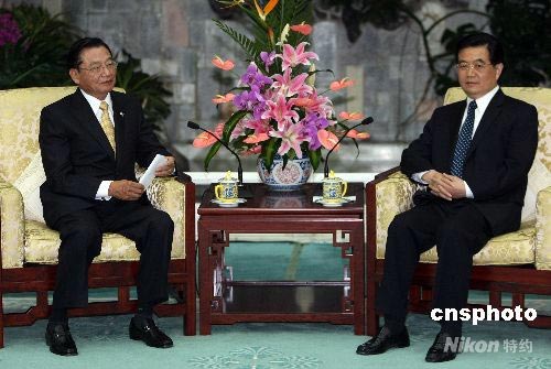 中共中央總書記胡錦濤,6月13日下午在北京釣魚臺(tái)國賓館會(huì)見臺(tái)灣海峽交流基金會(huì)董事長江丙坤一行。中新社發(fā) 任晨鳴 攝