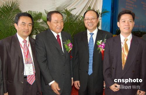 6月27日,第三屆兩岸產(chǎn)業(yè)共同市場研討會暨第四屆桂臺經(jīng)貿(mào)合作交流會在廣西南寧開幕,國臺辦常務(wù)副主任鄭立中、中共廣西壯族自治區(qū)委員會書記郭聲琨、中國國民黨副主席關(guān)中等人出席會議。圖為國臺辦常務(wù)副主任、海協(xié)會常務(wù)副會長鄭立中(右二)、中國國民黨副主席關(guān)中(右三)和出席會議代表合影。