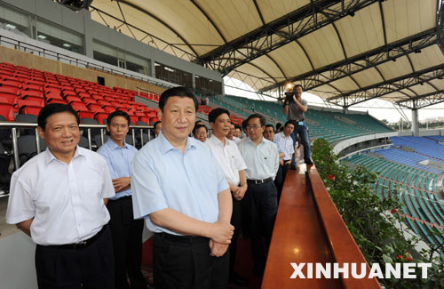 7月15日,中共中央政治局常委、國家副主席習近平實地考察北京奧運會足球比賽秦皇島賽區(qū)籌辦工作。新華社記者黃敬文攝