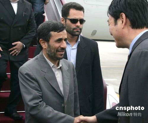 9月6日,伊朗總統(tǒng)艾哈邁迪-內賈德飛抵首都國際機場,前來出席北京殘奧會開幕式及相關活動。中新社發(fā) 富田 攝