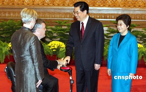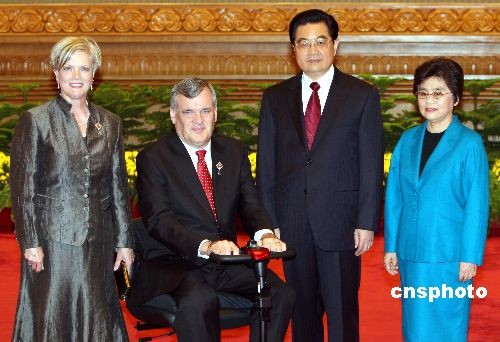 圖:胡錦濤夫婦歡迎出席北京殘奧會的加拿大安大略省省督