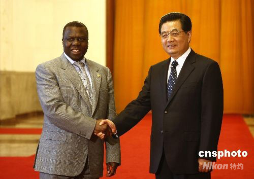 9月16日,中國國家主席胡錦濤在北京人民大會(huì)堂與幾內(nèi)亞比紹總統(tǒng)維埃拉舉行會(huì)談。中新社發(fā) 盛佳鵬 攝