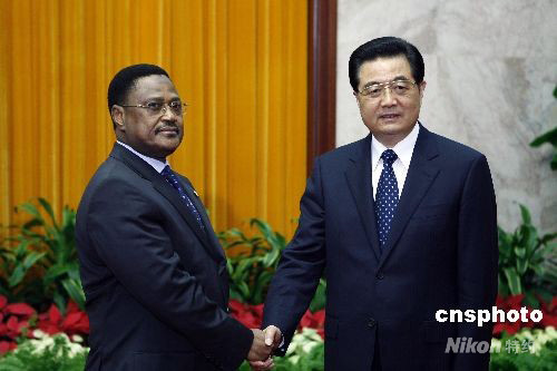 9月16日,中國(guó)國(guó)家主席胡錦濤在北京人民大會(huì)堂會(huì)見尼日爾總理奧馬魯。中新社發(fā) 盛佳鵬 攝