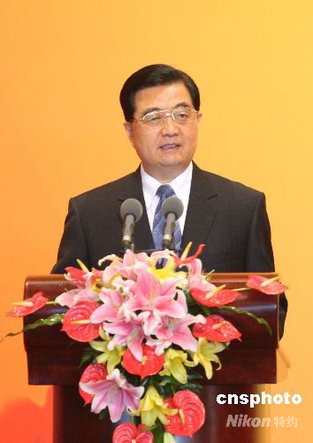 圖:胡錦濤在殘奧會閉幕式歡迎宴會上致辭